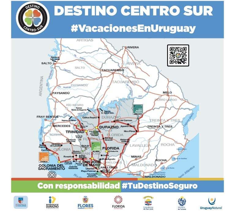 Datos prácticos y consejos para recorrer las rutas nacionales 1, 3, 11, 23 y 45 - Más información en Places to go – South Central Region – Uruguay Natural – Ministerio de Turismo